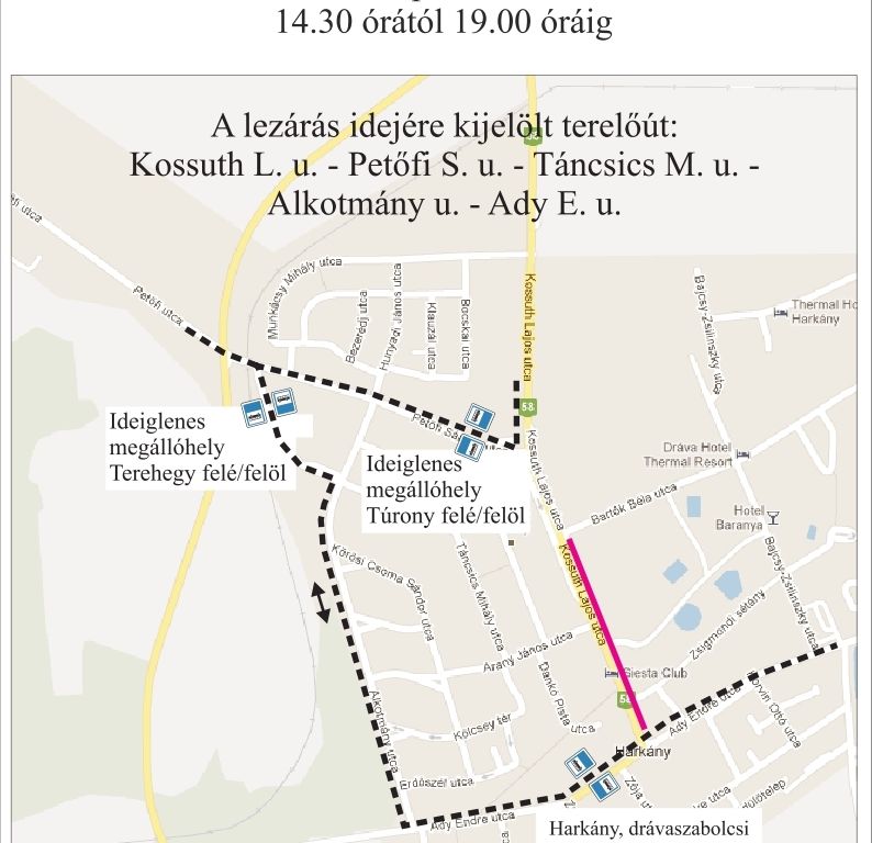 Ideiglenes forgalmirend-változás Harkányban a XXIV. Harkányi Szüreti Fesztivál ideje alatt