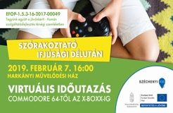 Virtuális időutazásra várjuk az érdeklődőket Szórakoztató Ifjúsági Délután keretében 2019. február 7-én, 16 és 20 óra között a művelődési házban. A rendezvényen megtekinthetőek és kipróbálhatóak a régi idők játékai a Commodore 64-től egészen a mai kor slágerjátékáig, az X-Box-ig. A résztvevőknek pizzával is kedveskedünk.
