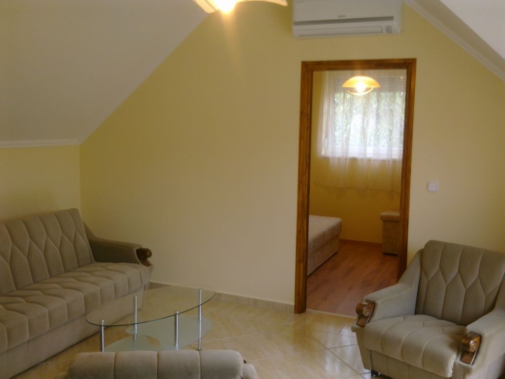 Vendégházunk 4 db klimatizált apartmannal várja Önöket. Tágas terekkel , szobákkal, jól felszerelt konyhákkal, csendes környezetben, belső zárt füves udvarral, erkélyekkel - teraszokkal , fedett kocsibeállóval várjuk. Kétszintes vendégházunkat elsősorban, nagy családoknak ajánljuk.